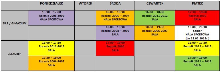 Nowa rozpiska treningów na salach gimnastycznych