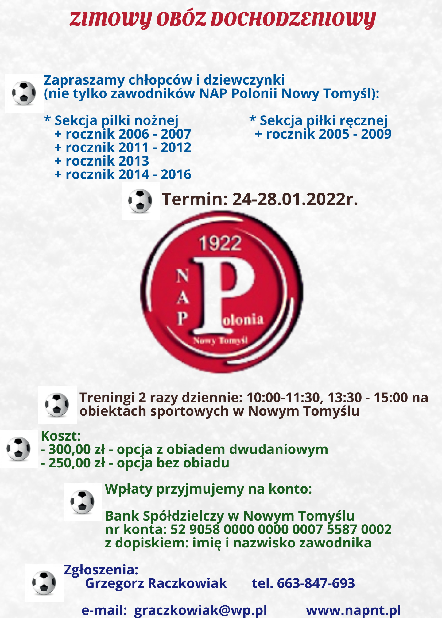 Formularz rejestracyjny na obóz / turniej / kolonię